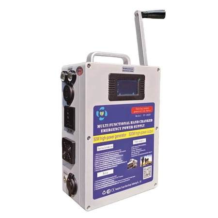Functions: lighting, and charging Battery capacity: 200Wh (equivalent to 5 Volts / 46800 mah) Power generation: 50 Watts (related to hand cranking speed) Output voltage: 5V, 12V, 110V USB output: 5V / 3A (maximum) 12V output: 240 Watts (maximum 20A) 110V o...