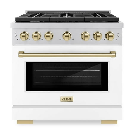 Luxury isn meant to be desired - it meant to be attainable. The ZLINE Autograph Edition 36 in. 5.2 cu. ft. Paramount Gas Range with 6 Burner Cooktop and Convection Gas Oven in Stainless Steel with White Matte Door and Polished Gold Accents (SGRZ-WM-36-G) f...