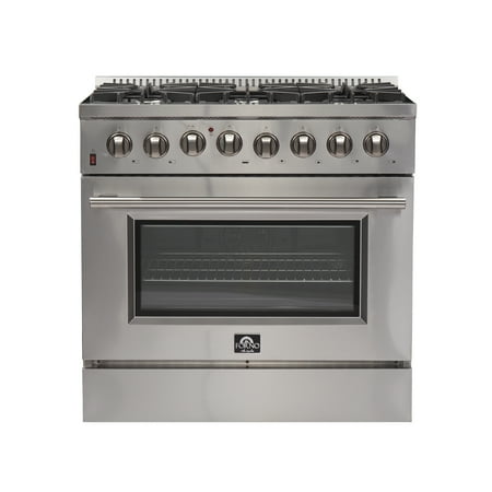 The Forno Galiano 36" French Door Gas Range brings professional styling and performance into your home kitchen at an affordable price. Enjoy effortless access to your oven with French doors that offer an extra 12 inches of space. The cooking surface has si...