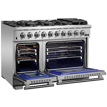 The Forno Massimo 48 Inch Gas Range harmonizes professional style and 304-grade stainless steel durability. Its 8 sealed burners, totaling 107,000 BTU, include a precision 20,000 BTU dual-ring burner that can simmer at 1,000 BTU. Continuous cast iron grate...