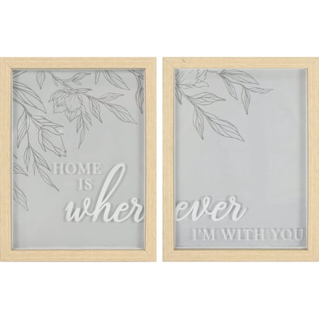 This set of prints features delicate prints of flowers and leaves, elegantly and simply portrayed to bring the essence of the outdoors into your home. The tender message screen printed on the glass overlay - "home is wherever I'm with you" - sets these pri...