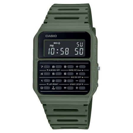 Casio Adult Unisex Calculator Watch in Green Color. Were You Ever unsure just how much to tip your server at a restaurant? With this 8-digit calculator watch, you can do so with confidence. Comes With A 35mm Resin Case, a Calculator, Dual Time, Water Resis...