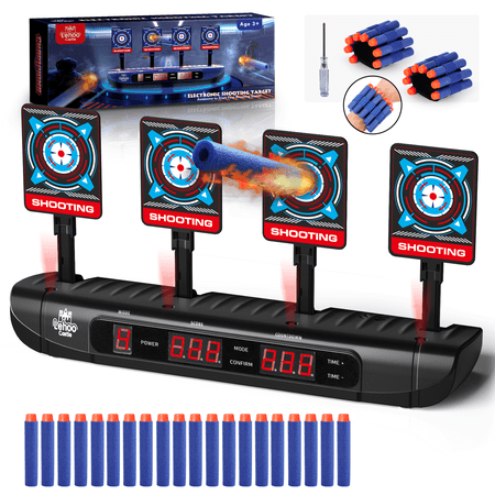 Introducing the newest digital Nerf target set, designed to elevate blaster battles with high-tech fun! This upgraded target system includes a shooting base, 4 auto-reset targets, 20 foam darts, wrist bands, and tools. Standout features like a 3-screen LCD...