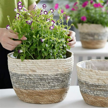 This flower basket is hand-woven from natural Seagrass materials, preserve the natural appearance of seagrass with beige detailing, a easy way to energize and decorate any space. Equipped with a built-in plastic coating, you can plant directly into the sea...