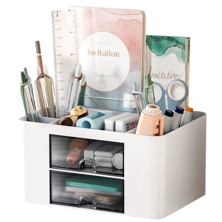 Ample Capacity: This office organization features 3 compartments, a top tray, a notebook holder, and 2 drawers, providing ample storage for all your office supplies. Practical Desk Caddy: This desk organizer is perfect for organizing small office essential...
