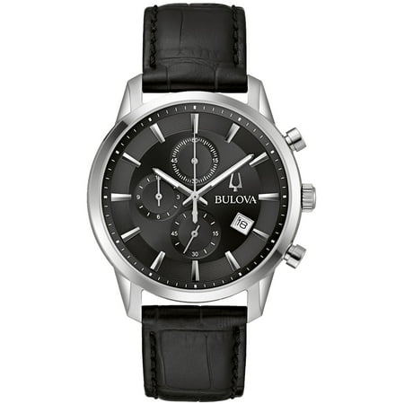 Stainless steel case, Leather strap, Black dial, Quartz movement, Scratch resistant mineral, Water resistant up to 3 ATM - 30 meters - 100 feet