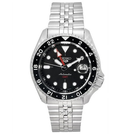 Black dial enhanced by silver-tone hands. Silver-tone stainless steel case with a silver-tone stainless steel band. Automatic movement. 100 meters / 330 feet water resistance. Uni-directional rotating bezel. Scratch-resistant hardlex crystal. Transparent c...