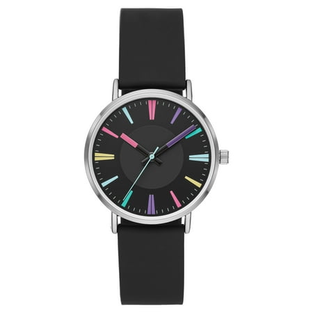 Transition seamlessly from work to weekend with this vibrant carnival dial watch that combines fun with functionality. The black dial, adorned with multi-colored indexes, adds a playful touch. The comfort-fit silicone band ensures ease of wear, making it a...