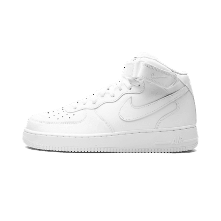 White leather/rubber Air Force 1 Mid '07 sneakers from NIKE featuring signature Swoosh logo detail, round toe, perforated detailing, front lace-up fastening, ankle touch-strap fastening, branded insole and rubber sole. These styles are supplied by a premiu...