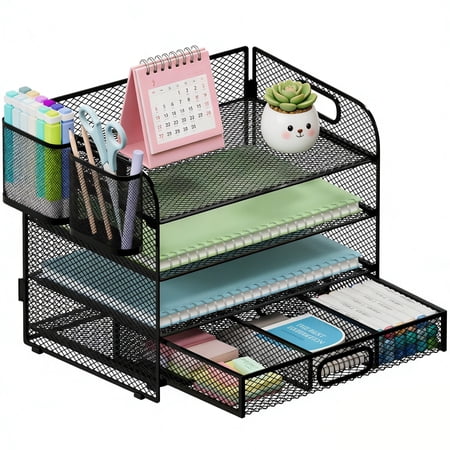This INTIGE paper organizer has a 7-story desk stand and 4 pen holders, making it perfect for organizing books, documents, and notebooks. This desktop file manager is made of sturdy mesh metal material, with a smooth surface, a structure that is not easily...