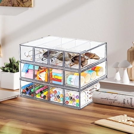 3-Tier Clear Plastic Desk Organizer – 12 Drawer Storage Box for Multiple Uses Maximize your workspace and tame the clutter with this versatile, see-through storage unit. Featuring 12 easy-slide drawers in a 3-tier stackable design, it’s perfect for org...