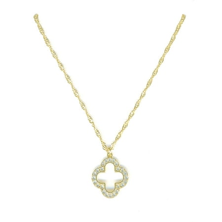 Time and Tru Gold Plated Clover Pave Stones Pendant Necklace with Lobster Clasp
