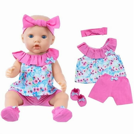 -Package Includes: 11'' Baby Doll and clothes, Bottles, mirror, comb. -Looks Real: The eyes of baby doll have a realistic looking. The head and limbs of the realistic toddler doll can be rotated, and the baby girl doll can sit and lie down. Baby doll cloth...