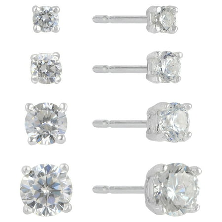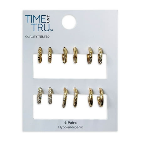 Time and Tru Pave Stones Gold Plated Earrings with Bullet Backs, 6 Pack