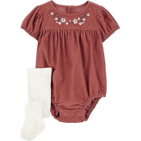 Her stylish fall look has arrived! This chic outfit for baby girl from Carter’s Child of Mine is packed with fabulous detail that gives her little outfit, big style! This two-piece romper set for baby girl includes an flower embroidered bubble romper wit...