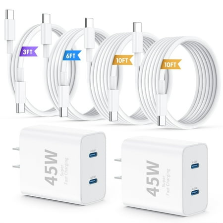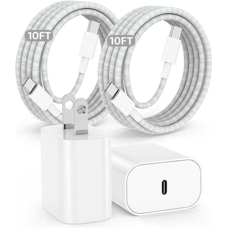 Super Fast iPhone 16 15 Charger combination 2Pack 20W USB C PD Wall Charger 2Pack 60W Woven 10FT Type C to Type C Charging Cable. Fast Data Transfer & Faster Charging: With this USB C to USB C Cable Woven Cord you could transfer data from your iPad Pro/iPh...