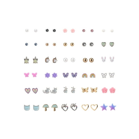 Wonder Nation Female Multicolored Plate Variety Butterfly Stud Earring Set, 30 pair for everyday wear. Featuring 30 pair of multiple finishes to compliment any occasion. Chose from Butterflies, Rainbows, Cats, Bunnies, or Unicorns as just some of the featu...