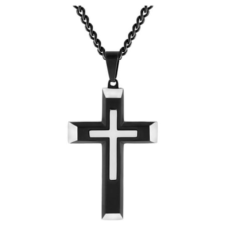 Wear a token of your faith with a contemporary cross pendant crafted in long-lasting stainless steel. This stacked two tone cross pendant with no gemstones is a timeless accessory with the blessing of protection – an ideal gift for men for any occasion m...