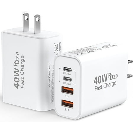 Say goodbye to slow charging and hello to ultra-fast power delivery! Our 40W 4-Port USB-C & USB-A Fast Charger combines Power Delivery (PD) and Quick Charge 3.0 (QC3.0) technology to deliver blazing-fast charging speeds. USB-C Ports (20W Each): Charge your...