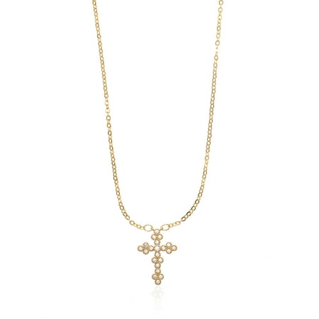 Add the perfect finishing touch to any outfit with this delicate cross motif necklace by Time and Tru. This classic style has genuine cubic zirconia stones and sparkles and shines alone, or is a perfect addition to a layered look.
