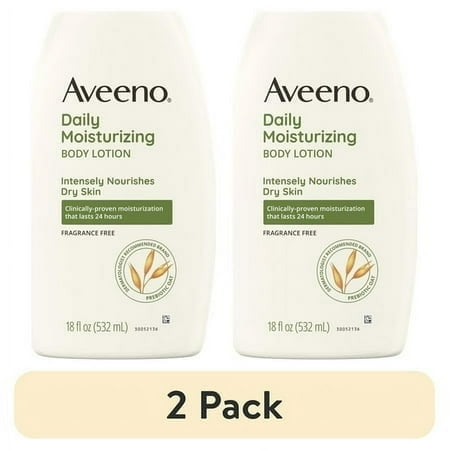 Aveeno Daily Moisturizing Body Lotion with soothing prebiotic oat intensely nourishes dry skin Gentle lotion, suitable for sensitive skin, has clinically proven moisturization that lasts