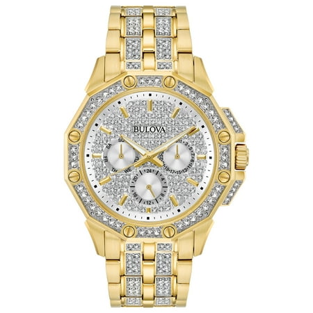 Blue dial enhanced by luminous yellow gold-tone hands. Yellow Gold PVD stainless steel case with a yellow gold pvd stainless steel band. Automatic movement. 30 meters / 100 feet water resistance. Fixed bezel. Scratch Resistant Sapphire crystal. Solid caseb...