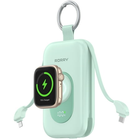 Charge smarter, not harder, with the RORRY Portable Charger 20000mAh. Designed for Apple lovers, this compact power bank comes with built-in USB-C and iOS cables, plus USB-C and USB-A ports, and even a magnetic wireless charger for your Apple Watch. That m...