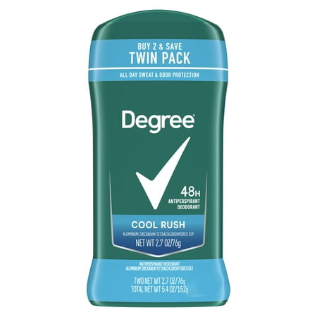 Degree Men Original Antiperspirant Deodorant for Men Cool Rush Twin Pack, 2.7oz. Degree Men Cool Rush Antiperspirant Deodorant delivers 48-hour sweat and odor protection to keep you feeling dry and fresh. This antiperspirant deodorant for men works as hard...