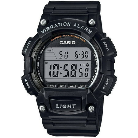 This Casio Men's Illuminator watch is a digital display. It has a features of round gray dial, and it also has month, day and date indicator. All of these features framed in a black resin case, and scratch-resistant resin glass. The black band of this watc...