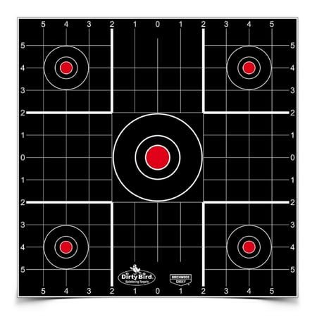 Use the large 12" Dirty Bird Sight-in target for sighting-in your firearms. Five bull?s-eye targets come with aiming points for open or scoped sights making it easy to check different ballistic loads for more shooting fun. Complete with 1" grid pattern and...