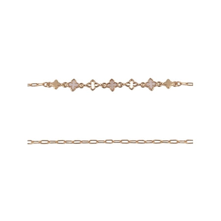 The Time and Tru Adult Female Gold-Tone Pearlized Resin Clover Shape 3pc Chain Bracelet Set is a stylish and versatile addition to your jewelry collection. This set features three beautiful bracelets, each showcasing a unique combination of gold-tone accen...