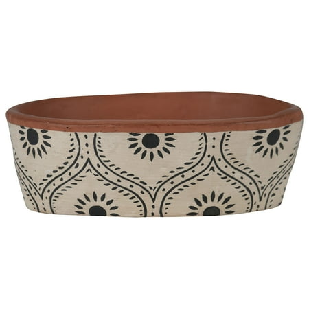 Petunia Talavera Ceramic Pot. This pot is very colorful. Talavera Ceramic pots have a drilled hole at the bottom; this enable them to be used as a planter. It has a base where water can be held. It will also prevent leaks when the plant is watered.