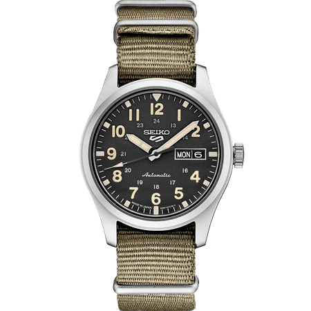 SEIKO 5 SPORTS 24-JEWEL AUTOMATIC WITH BLACK DIAL MEN'S WATCH SRPG35 The Seiko SRPG35 is an automatic field-style watch from the Seiko 5 Sports collection, inspired by vintage military timepieces. It features a bead-blasted stainless steel case for a matte...
