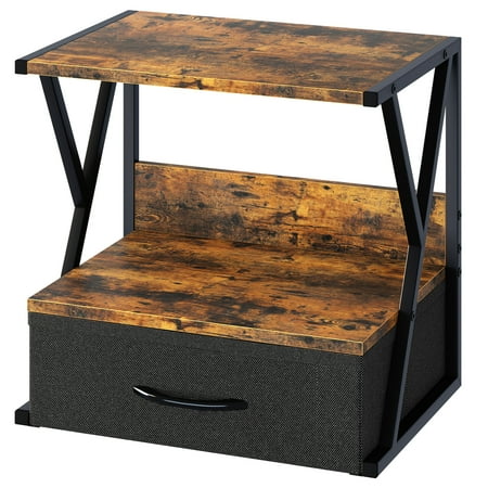 Printer Stand For Desk With Storage Drawer, 2 Tier Desktop Or Under Desk Shelf, Multi-Purpose Desk Organizer For Home Office, fit Fax Machine/3D Printer/Scanner, Rustic Brown