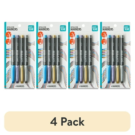 Pen+Gear Permanent Metallic Marker 4 Count Assorted Color set includes four metallic shades: gold, silver, blue and lilac. These high-quality markers feature non-toxic, opaque ink that works on various surfaces like paper, glass, metal, and plastic. The fi...