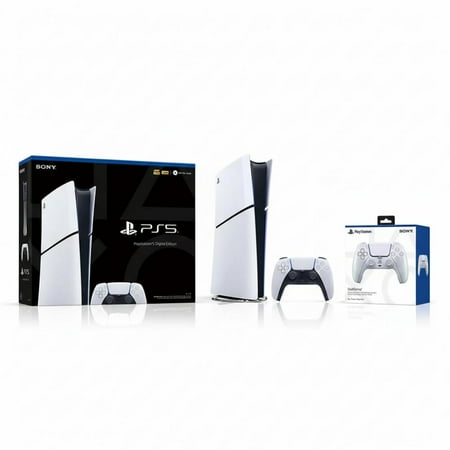PlayStation 5 Digital Slim Console + Sony PlayStation 5 DualSense Wireless Controller Chroma Pearl - Includes PS5 Console & 2 DualSense Controllers - 16GB RAM - 1TB SSD - Custom Integrated I/O - Up to 120fps @ 120Hz output