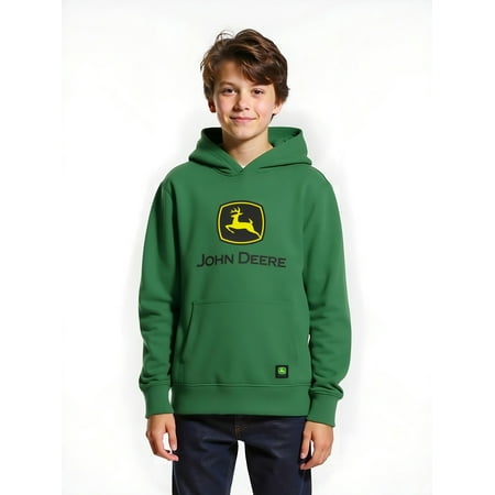 This John Deere Boys Logo Graphic Pullover Hoodie is perfect for young fans of the iconic brand. Made from a comfortable blend of cotton and polyester, this hoodie offers a relaxed fit that ensures all-day comfort. It features an attached hood with drawstr...