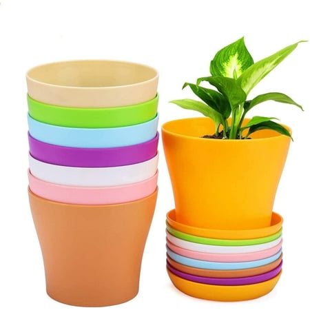 Product description 8Pcs Small Plant Pots Colorful Plastic Flower Pots Outdoor Indoor Plant Pots for Office House Desk with Pallet/Trays, 8 Colors Value Package - Set includes 8 small plastic flower pots and 8 matched saucers, assorted with 8 color, 1 piec...