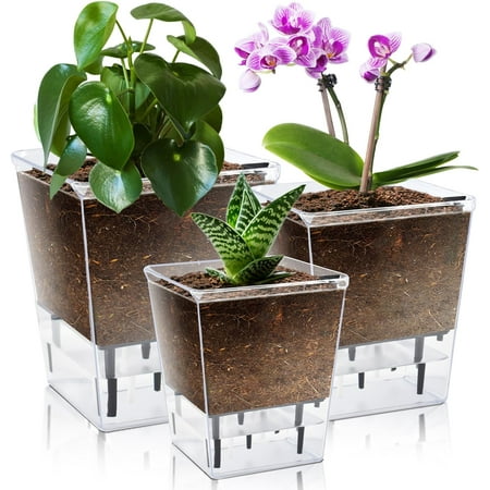 Transparent pots allow you to observe the growth of plants up close, which is fun! It is very suitable for decorating windowsills, desktops, bedrooms, living rooms, etc. It is also a thoughtful gift for friends who like planting. Self-watering Pots Working...