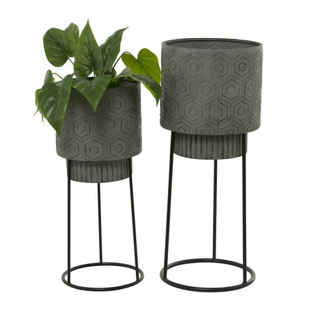 DecMode 27", 23"H Dark Gray Metal Planter with Removable Stand (2 Count) is a unique addition to your stylish home. Planter features a deep pot with slender structure making a friendly planter for any compact space. Enhance the mood and the look of your ro...