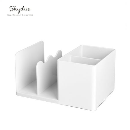 The Skydue desktop storage organizer is designed with a double structure of book stand and pen holder, which can store pens, notepads, fixing glue and other items, making the desktop clean, and can also be used to store women's makeup brushes and other bea...
