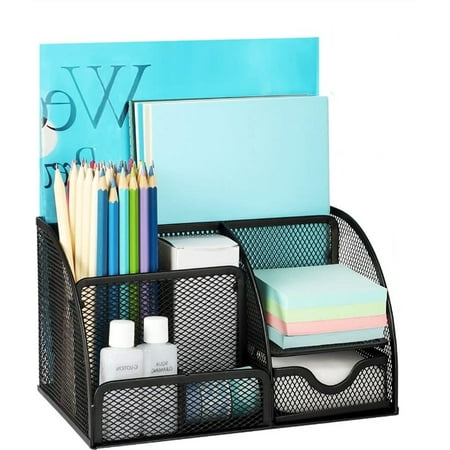 Specifications: Color: Black Material: Metal Dimensions: 8.7"L x 5.5"W x 5"H Compartments : 6 compartments and 1 drawer Shipping Weight: 1.2 LBS Scheam Desk Organizer for Office Desk Organizers and Accessories with 6 Compartments + Drawer | The Metal Mesh ...