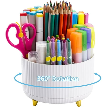 ZHUYING Desk Organizer, 360-Degree Rotating Holder for Desk, Desk Organizers and Accessories with 5 Compartments Organizer, Art Supply Storage Box Caddy for Office, Home