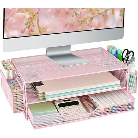 Description This computer monitor stand is not only durable but is also extremely space-efficient. It can stabilize your monitor and organize your office supplies efficiently, taking the clutter out of your desktop, and providing a cost-effective solution ...