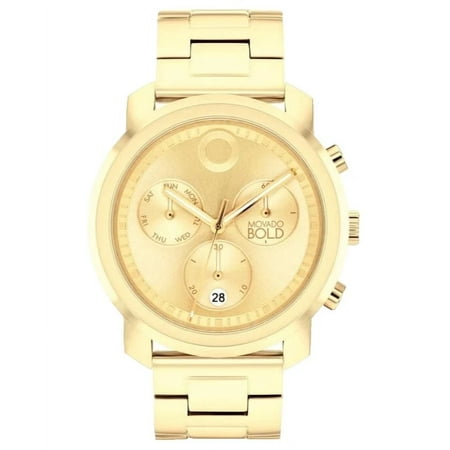 Men's Movado Trend Propel, 44mm yellow gold PVD case and yellow gold PVD bracelet, yellow gold dial, K1 mineral crystal, Swiss Chronograph Movement