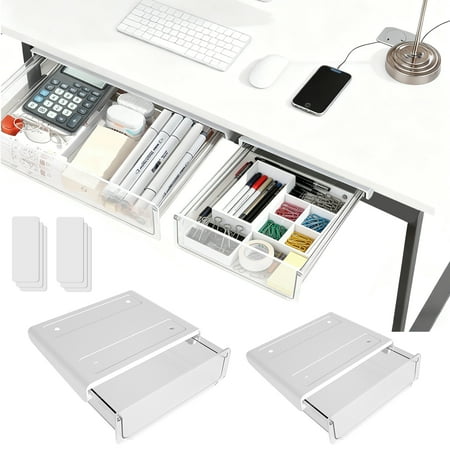 This 2-pack under desk drawer set features a large and small combination design that maximizes your storage space. The large under desk organizer easily holds A5 notebooks, stationery, and other everyday essentials, while the small under table drawer is su...