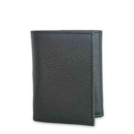 George Men's Genuine American Bison Leather Everyday Trifold Wallet Ranger Black, Men ages 16 to 99, Natural Medium Leather-Grain Texture. Featuring card slots, pockets, ID window wing, bill divider and spare key holder. RFID protected.