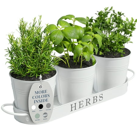 Decorative Indoor Herb Planter with Tray, White, by Barnyard Designs: Add greenery to your space with this vintage metal windowsill planter. Herb planters for indoor plants with a farmhouse touch. Place the indoor herb planter on your kitchen counter or di...