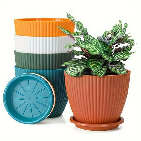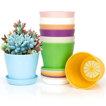 Features: Nice gifts: These planting pots with saucers are suitable for sending to your friends, colleagues, relatives, neighbours, family members and others who like planting, they will be happy to receive these gifts. Bright colors: The plastic nursery p...