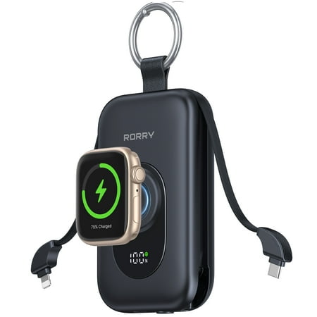 Charge smarter, not harder, with the RORRY Portable Charger 20000mAh. Designed for Apple lovers, this compact power bank comes with built-in USB-C and iOS cables, plus USB-C and USB-A ports, and even a magnetic wireless charger for your Apple Watch. That m...